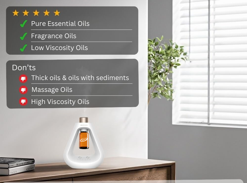 Clean Waterless Diffusion: Cleanly enjoy fragrance. Misty uses cold-air diffusion technology to turn essential and fragrance oils into dry mist microparticles, filling your space with a smooth, long-lasting aroma. No water, no mess, no sticky residue.